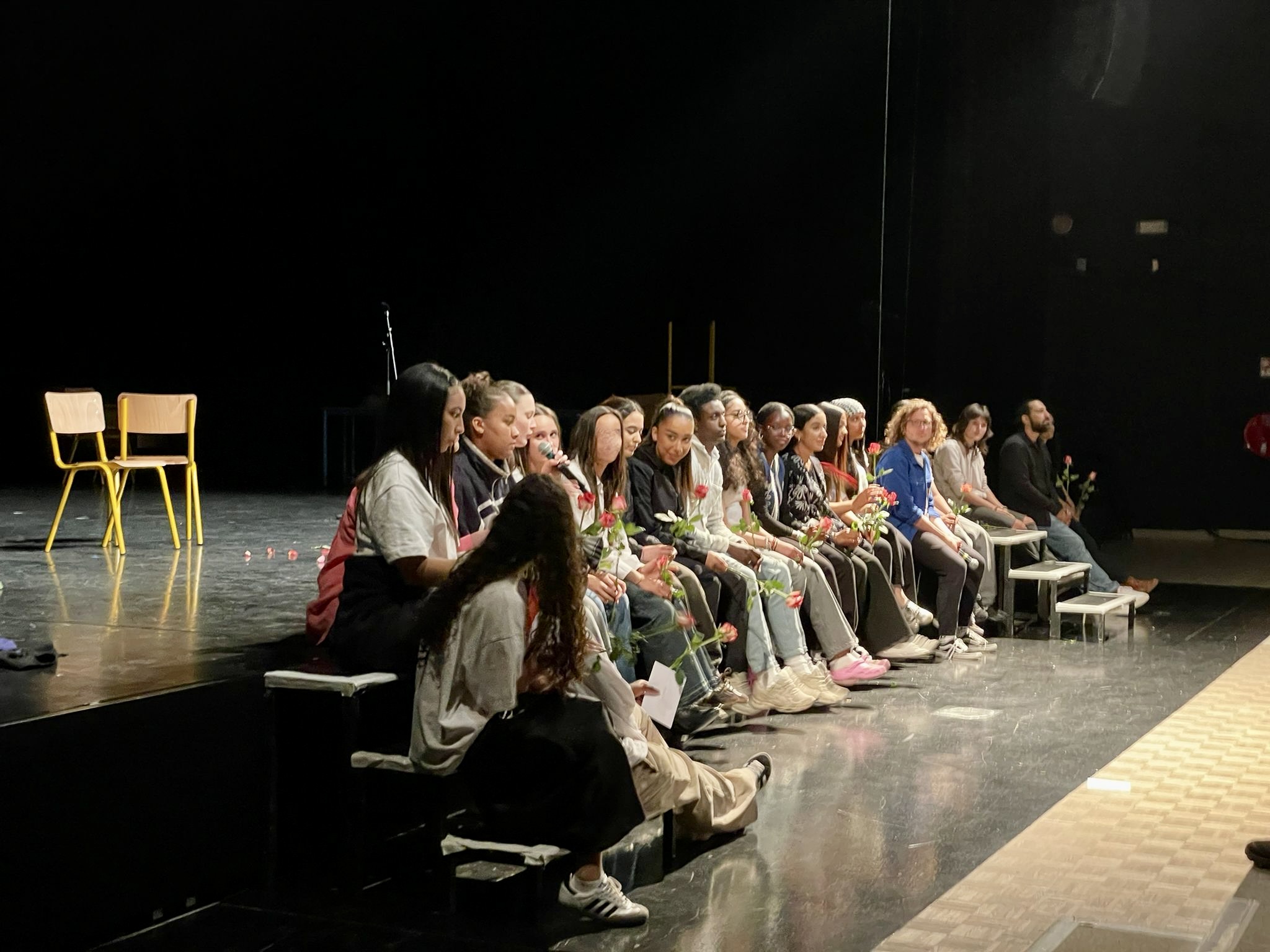 Après cette aventure théâtrale, on est vraiment devenus très soudés. On s’est rapprochés, on s’est entraidés, on a rigolé ensemble, et ça a créé des liens forts entre nous. Par exemple, maintenant quand on se croise dans les couloirs on parle et on rigole, on se fait plein de compliments et même des câlins pour certaines ! Il s’est installé un réel climat de confiance dans lequel on n’a plus peur du regard des autres, on ose se confier, on se sent écoutés, compris. On se raconte nos petites histoires entre nous pour rigoler, en discuter ou même se donner des conseils dans la bienveillance. C’est comme si on ne formait plus qu’un seul groupe, uni, traversé par l’énergie du spectacle qu’on a vécu ensemble.